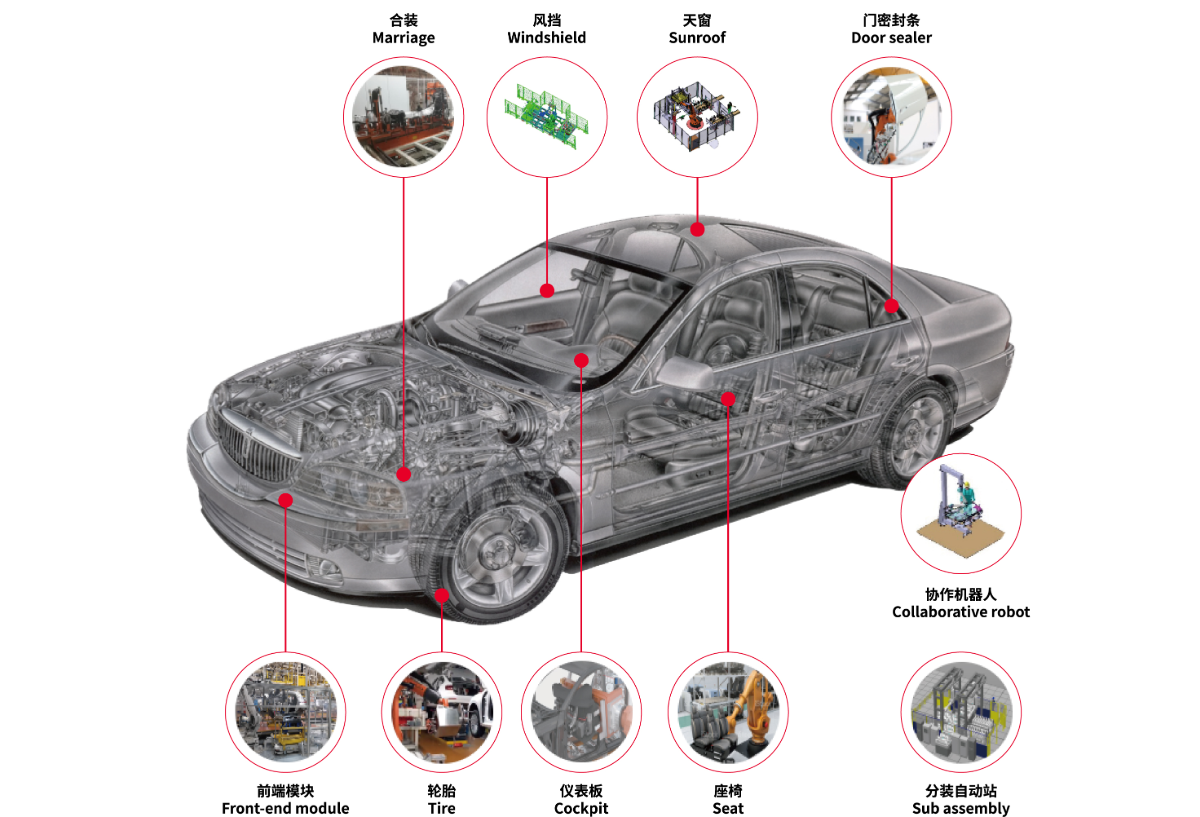 翌耀科技可為汽車裝配與新能源領域提供大型系統集成應用服務,服務內容包括工藝方案分析與解決方案、自動裝配技術、輸送線技術、密封條裝配技術、涂膠技術及合裝技術等。