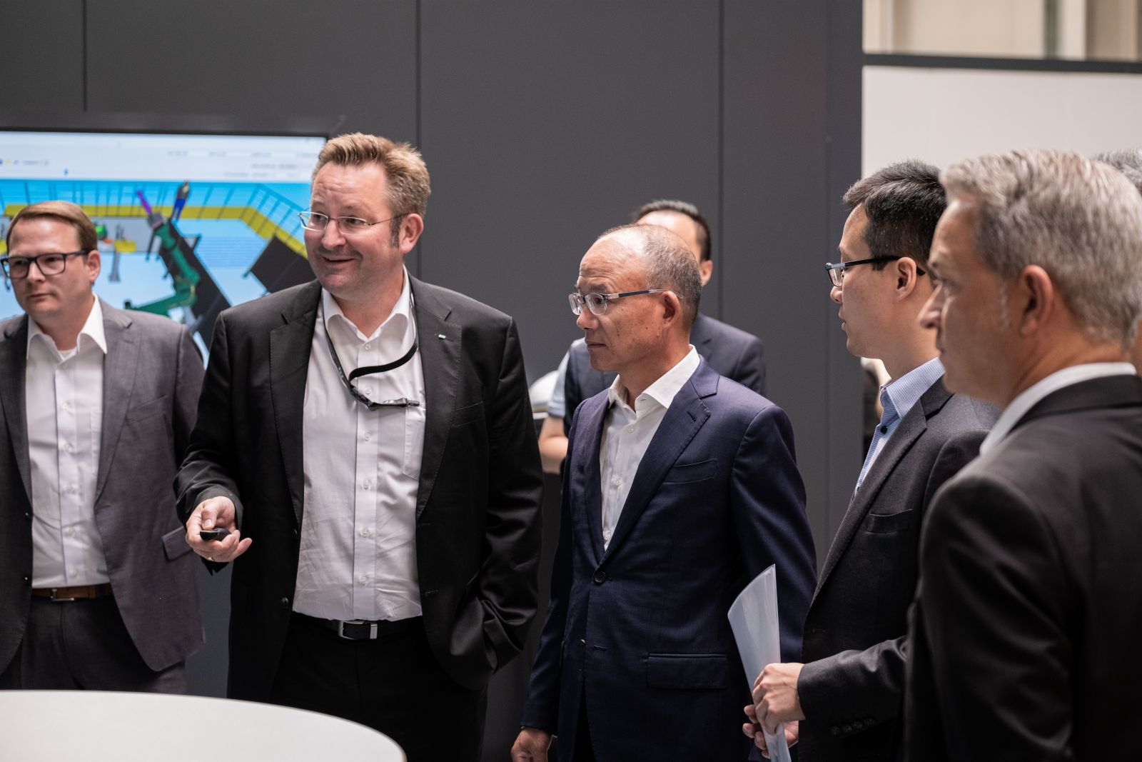2022年7月19日,復星國際董事長郭廣昌一行于德國訪問期間參觀考察了翌耀科技旗下企業FFT Produktionssysteme GmbH & Co. KG(下簡稱FFT),并為FFT位于富爾達的展廳揭幕。FFT 首席執行官Tristan Pfurr陪同郭廣昌一行參觀了全新落成的展廳,向大家展示了各種機器人的交互合作,以及FFT的專有技術和相關應用領域。